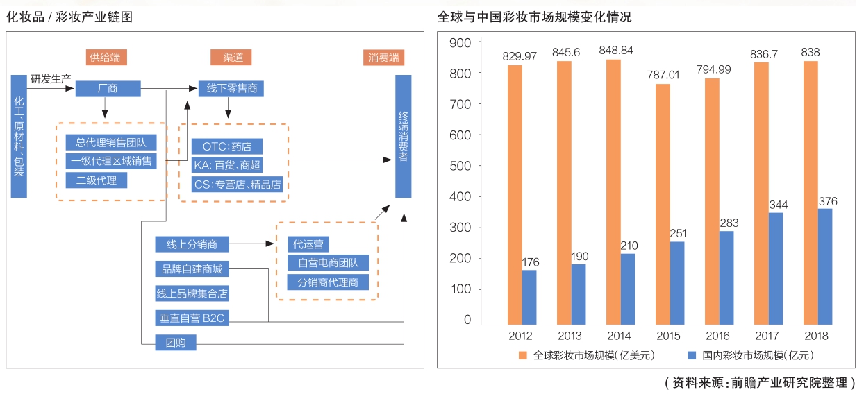 化妆品作为快速消费品中的一大类,具有跨越经济周期的顽强生命力。其中,彩妆作为一种使用后立即产生面部视觉效果的化妆品无疑受到爱美人士青睐:经济景气时,消费者会选择高端彩妆产品扮靓;经济不景气时,“口红效应”可慰藉心情。据欧莱雅公司测算,彩妆已连续多年成为全球化妆品市场持续增长的驱动力。