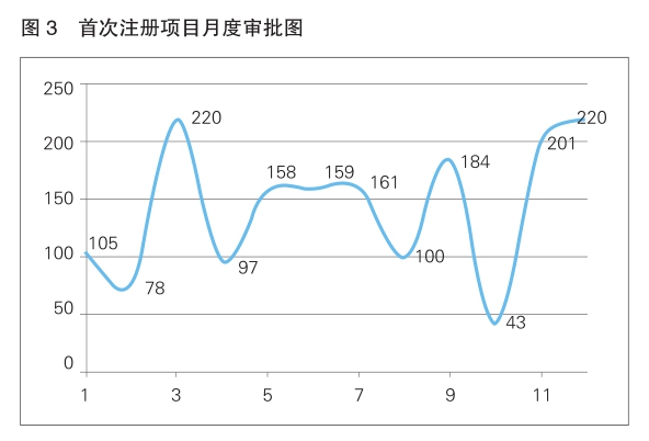 2019年,国家药监局共批准医疗器械首次注册1726项,月度审批情况见图3。