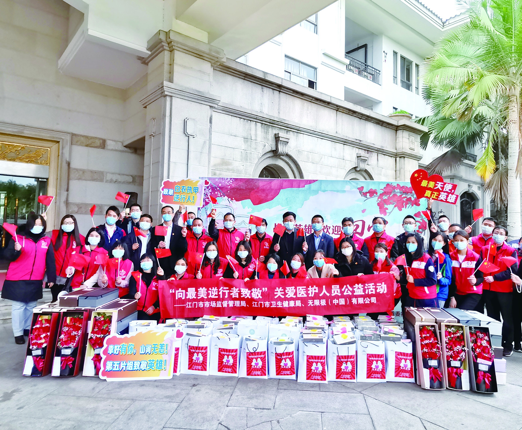 ▲ 图为无限极党总支参与关爱江门支援湖北抗击疫情医护人员公益活动。