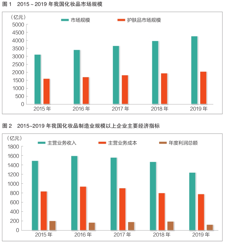 根据中国日用化学工业信息中心数据,2015~2019年,我国化妆品行业复合增长率为8.27%,高于国内社会消费品复合增长率。2019年,我国化妆品市场规模同比增长7.85%,达4260亿元,其中护肤类化妆品市场规模超过2000亿元。