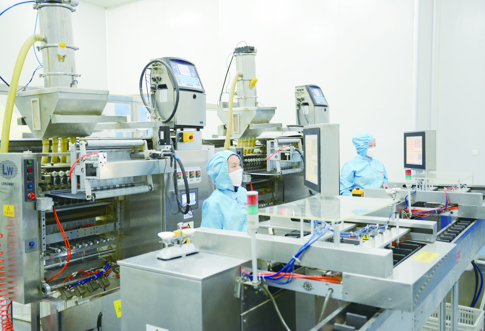 步长制药稳心颗粒自动分包装生产线。