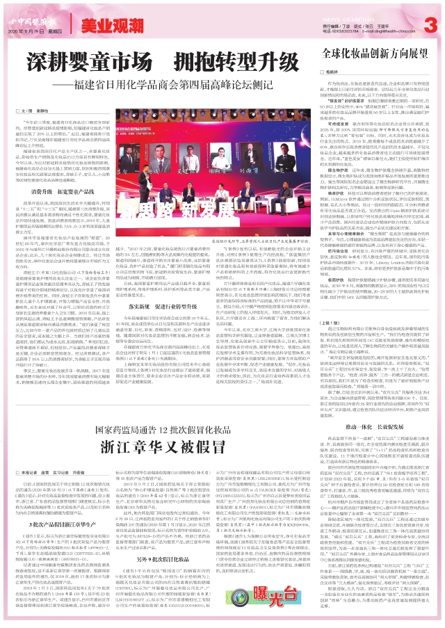 此外,地方药监部门网站也发布过类似通告。今年8月28日,江西省药监局发布的《关于停止销售章华护染焗油2/0的通告(2020年第1号)》显示,2020年江西省化妆品监督抽检发现,标示名称为章华护染焗油2/0、生产批号为887529-D的产品不合格。经浙江省药品监督管理部门核查,该产品为假冒产品,浙江章华声称从未生产过该名称产品。