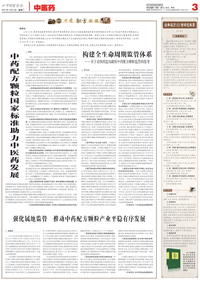 【聚焦中药配方颗粒】构建全生命周期监管体系