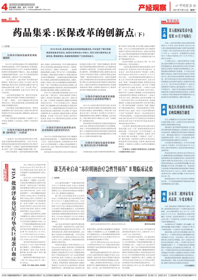 康芝药业启动“苏拉明钠治疗急性肾损伤”Ⅱ期临床试验