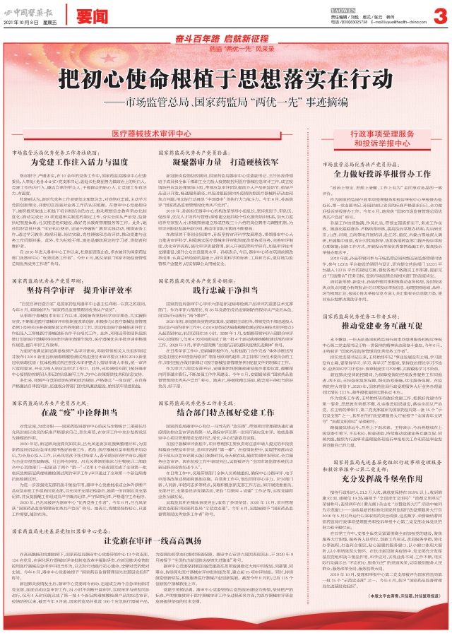 新冠肺炎疫情防控期间,国家药监局器审中心党委副书记、主任孙磊带领班子成员和全体干部职工全力投入疫情防控用医疗器械应急审评工作,成立疫情防控应急处理领导小组,带领应急审评团队提前介入产品研发环节,指导产品设计开发,畅通服务路径,并及时跟踪国内外疫情防控医疗器械科研动态和焦点问题,用实际行动展现“中国器审”的执行力与战斗力。今年6月,孙磊获评“国家药品监督管理局优秀共产党员”。