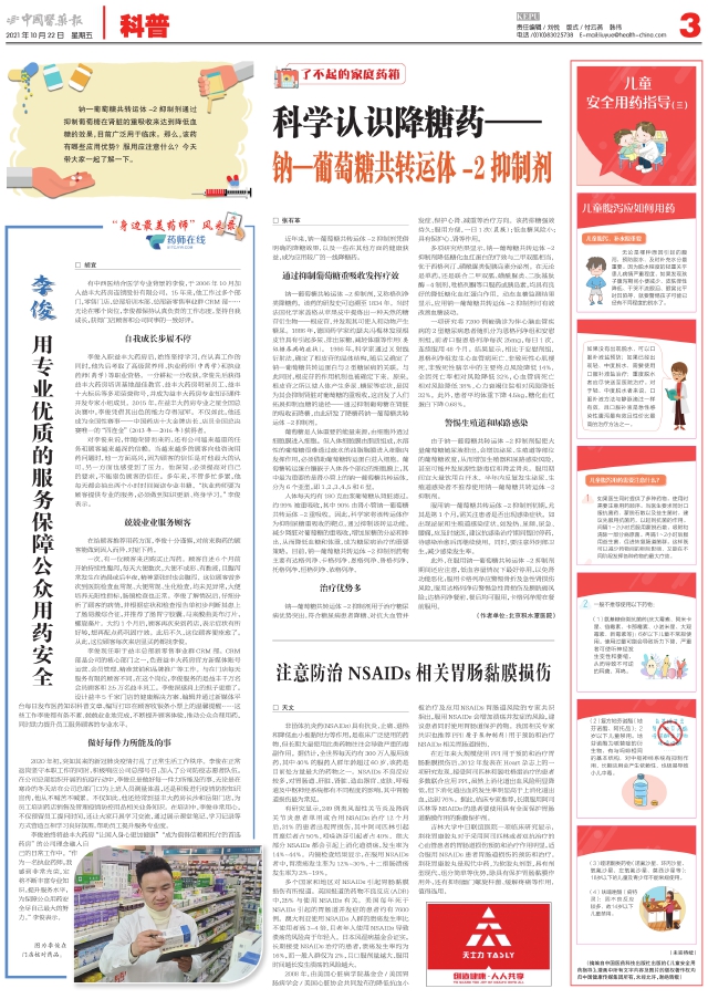 此外,在服用钠—葡萄糖共转运体-2抑制剂期间还应注意,低血容量情况下最好停用,以免肾功能恶化;服用卡格列净应警惕骨折及急性肾损伤风险,服用达格列净应警惕急性肾损伤及膀胱癌风险;达格列净餐前、餐后均可服用,卡格列净需在餐前服用。(作者单位:北京积水潭医院)