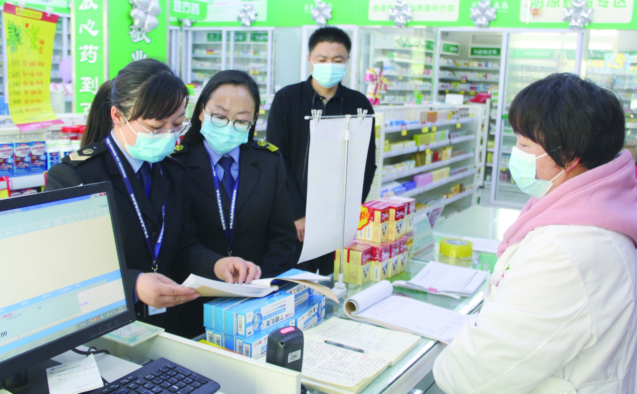 图为该局监管人员在一家零售药店检查“四类药品”销售记录。 任国轩 摄