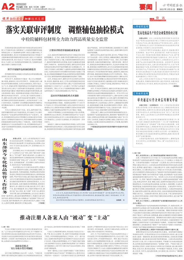 【提升抽检质量 加强技术支撑】落实关联审评制度 调整辅包抽检模式