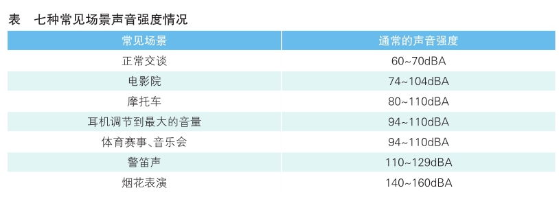 对于超过85dBA的声音都需要警惕。为了直观了解85dBA声音的概念,特列举7种常见场景的声音强度(详情见表)。