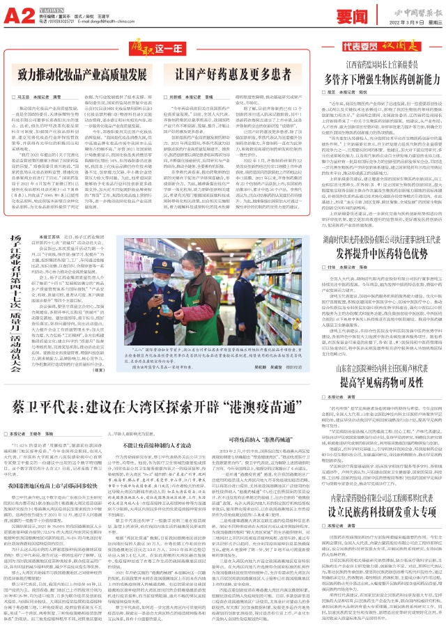 蔡卫平代表:建议在大湾区探索开辟“港澳疫苗通”