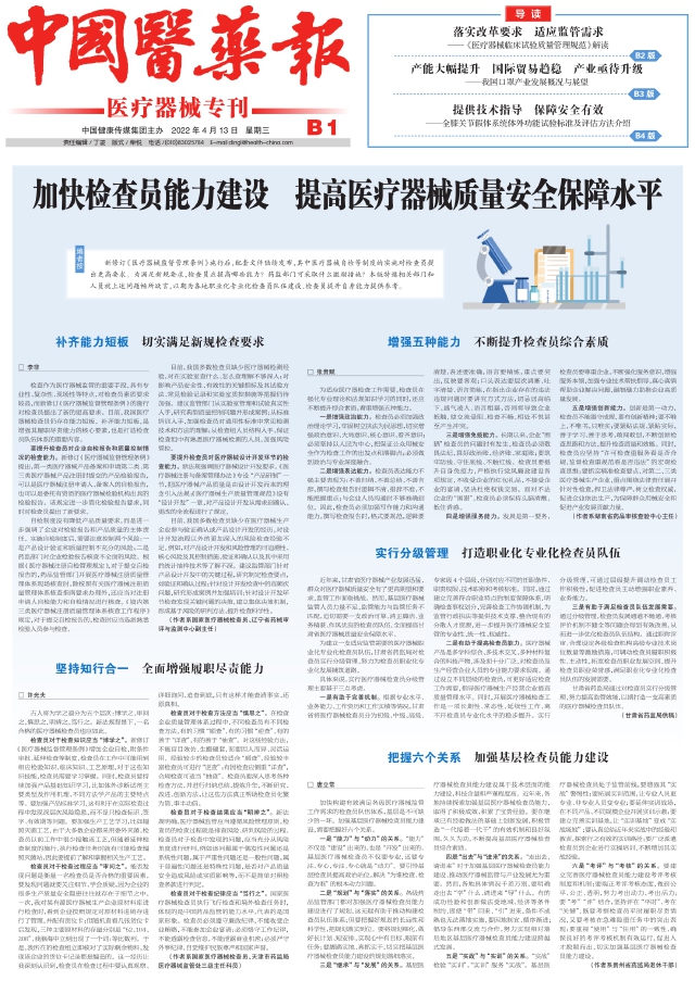 加快检查员能力建设 提高医疗器械质量安全保障水平