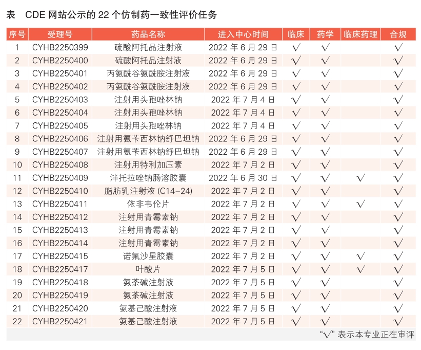 4 CDE网站公示22个仿制药一致性评价任务,涉及硫酸阿托品注射液等药品(详见表)。