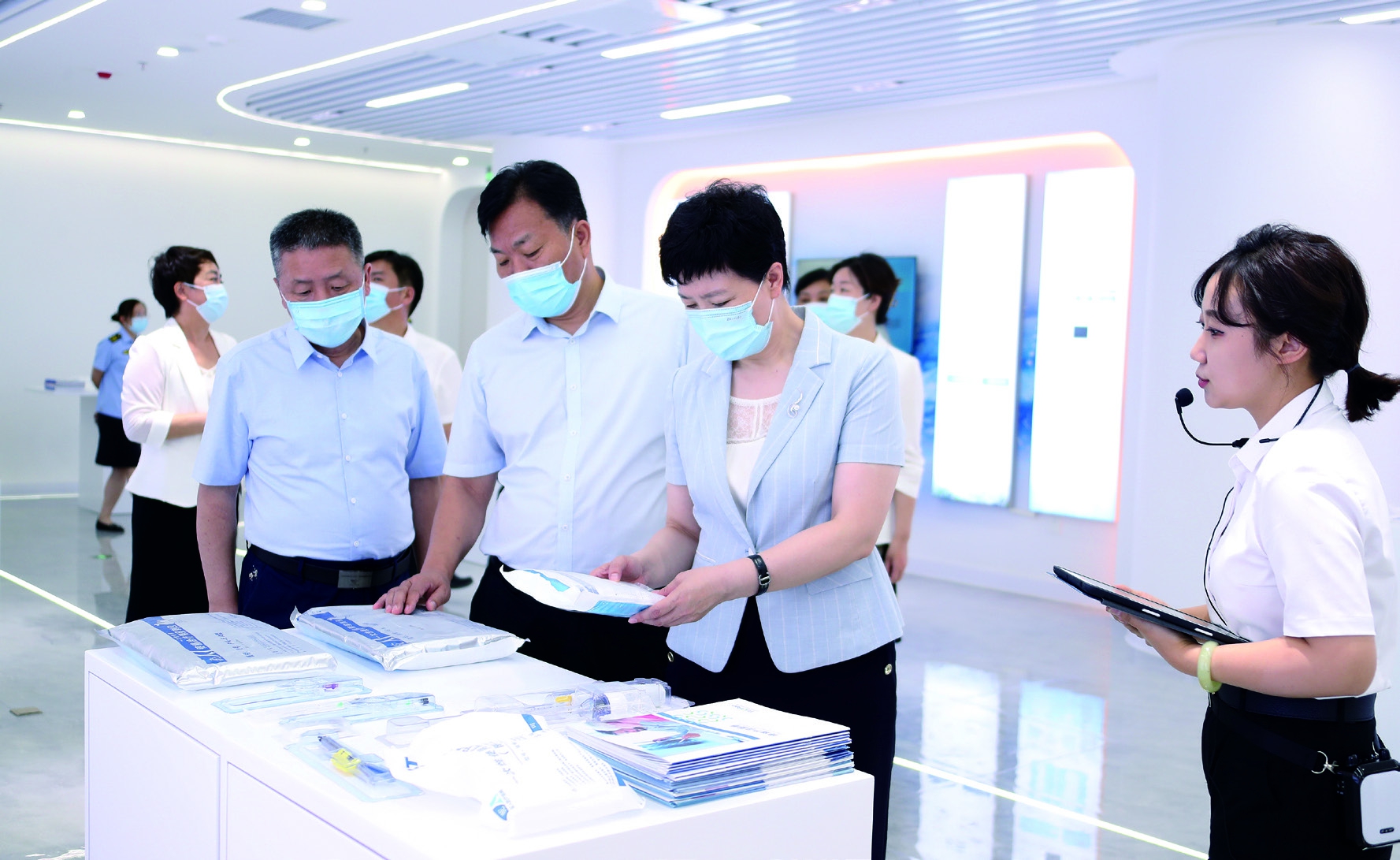 图为启动仪式结束后,自治区药监局等单位相关负责人在新疆医疗器械交易市场展厅参观。