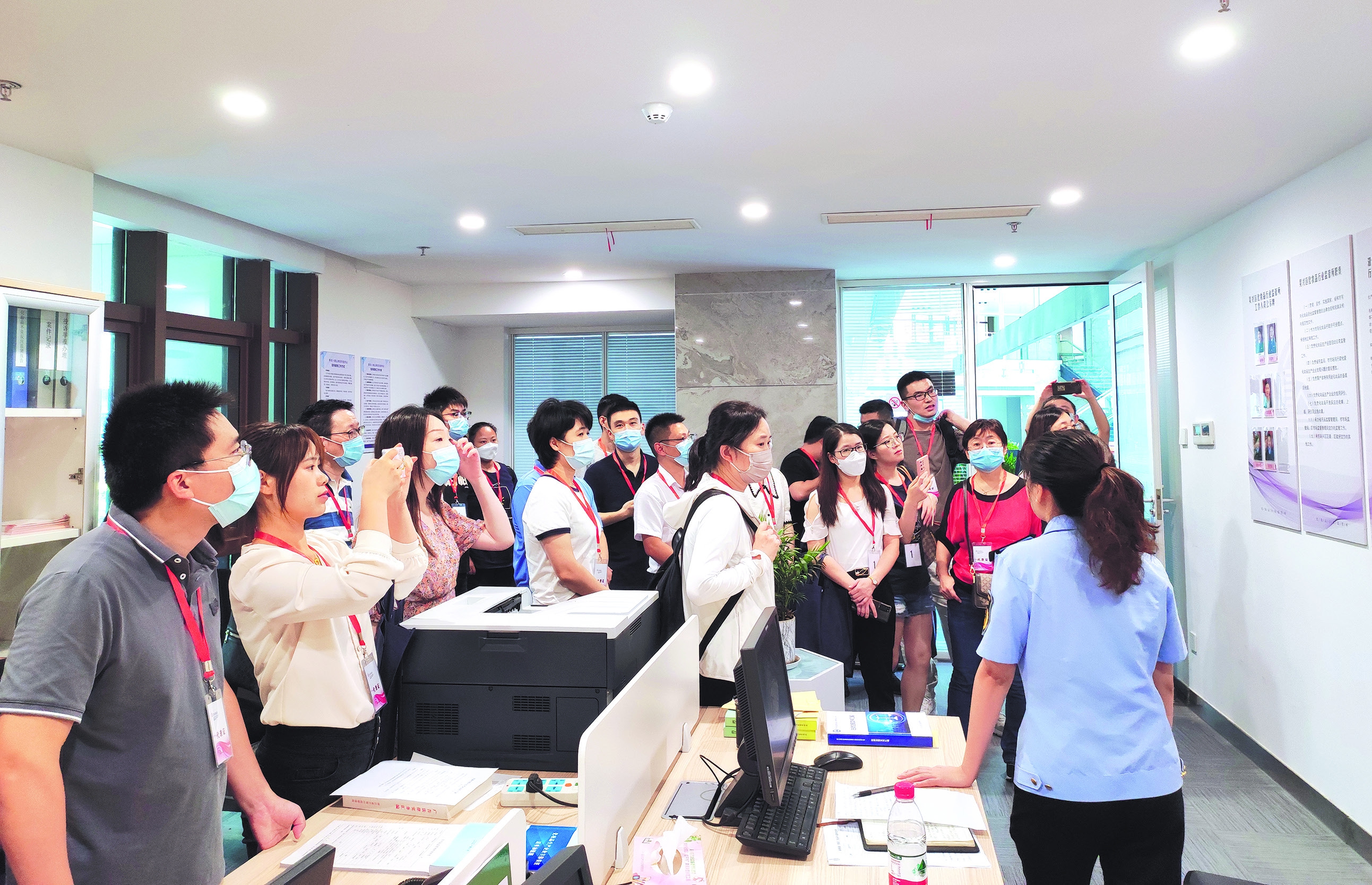 图为学员们在浙江省湖州市吴兴区化妆品行业监管所参观学习。 戴惠英 摄
