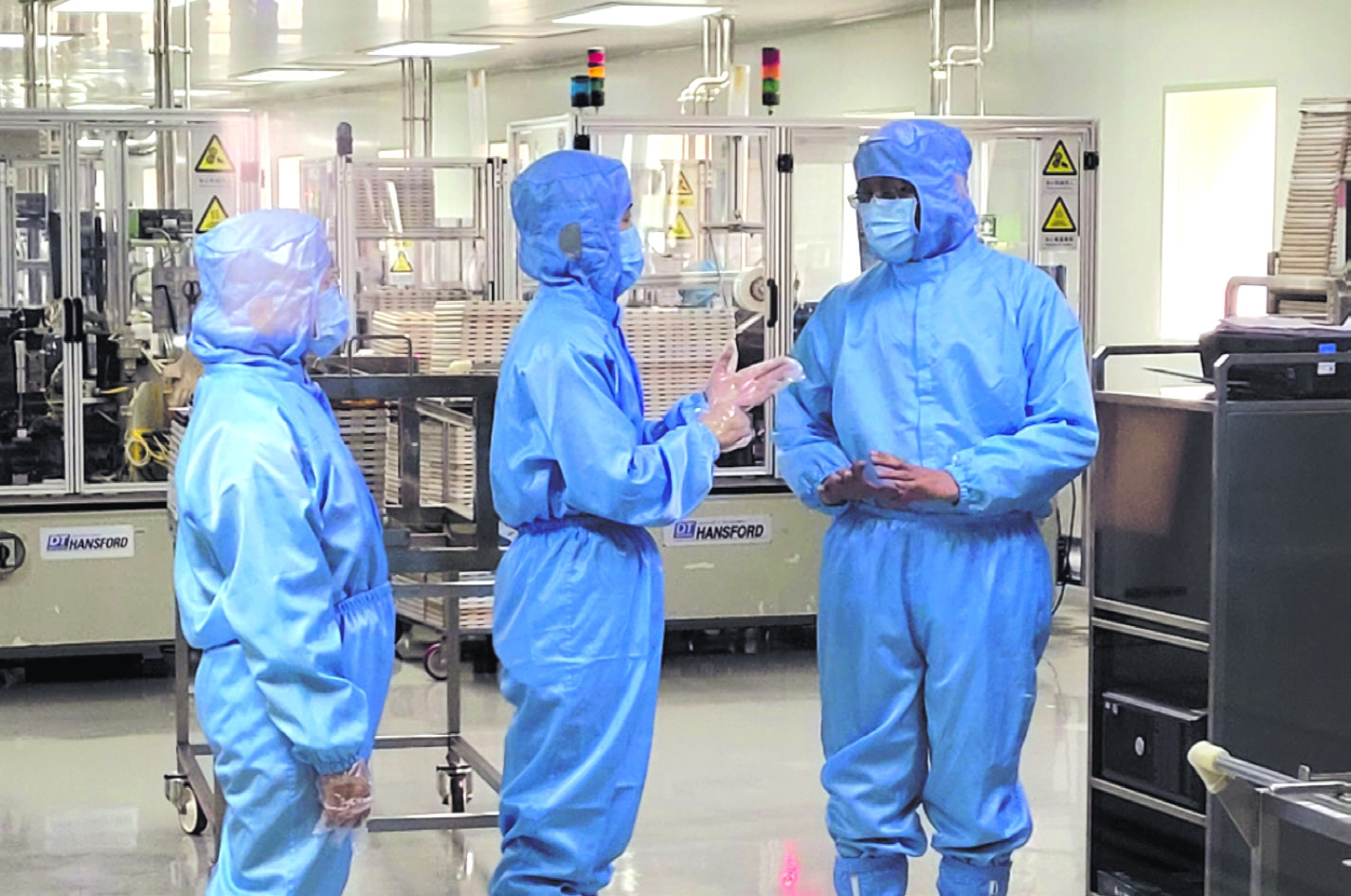 近日,北京市药监局第一分局组织开展装饰性彩色隐形眼镜生产环节专项检查,聚焦企业是否按照相关标准以及注册的产品技术要求组织生产。图为该分局监管人员在一家隐形眼镜生产企业车间检查。
