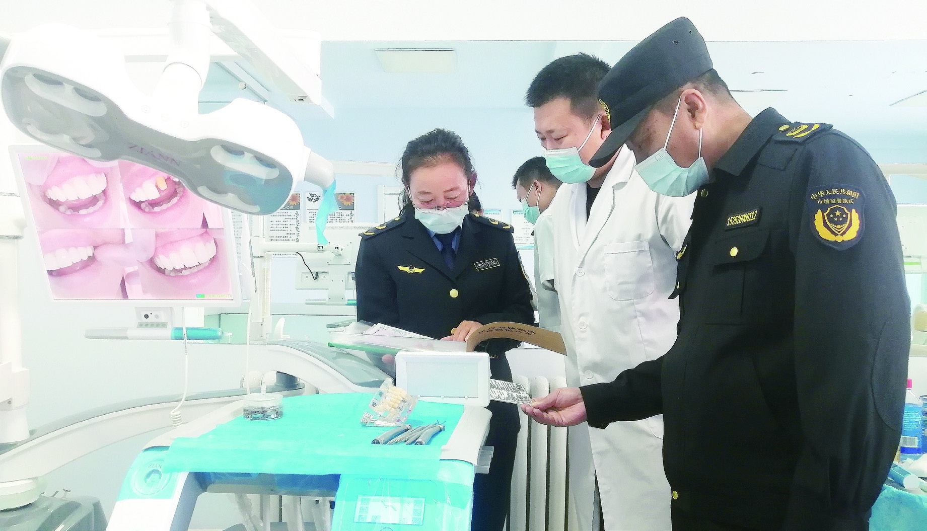 图为该局监管人员在一家牙齿美容机构检查。 苏日嘎拉图 摄