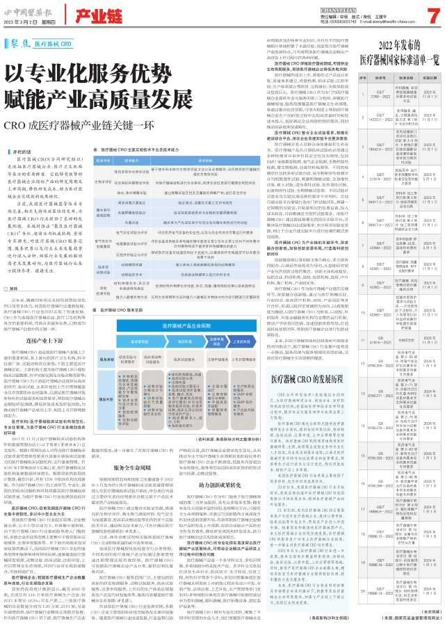 当前,我国医疗器械监管体系日趋完善,相关支持性政策陆续发布,为医疗器械CRO行业提供了良好的发展环境。本版特推出“聚焦医疗器械CRO”专栏,邀请业内权威机构、资深专家撰文,对医疗器械CRO服务范围、服务优势以及行业未来发展趋势进行深入分析,洞察行业发展的驱动因素及发展动向,为医疗器械行业各方提供参考。敬请关注。