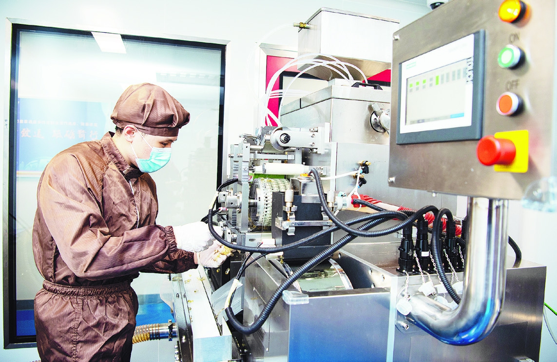 ▲图为在广药国际(澳门)青洲制药厂生产车间,工人正在运用现代化生产设备生产中成药。 广玫 摄