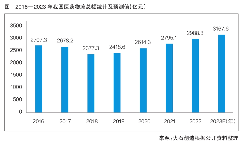 近年来,我国医药物流业发展势头良好,物流总额呈现逐年增长态势,且增速显著。中物联医药物流分会发布的《中国医药物流发展报告》显示,2022年,我国医药物流总额达到2988.3亿元,同比增长6.91%;2023年有望突破3160亿元;预计未来我国医药物流业将保持8%以上的速度增长。