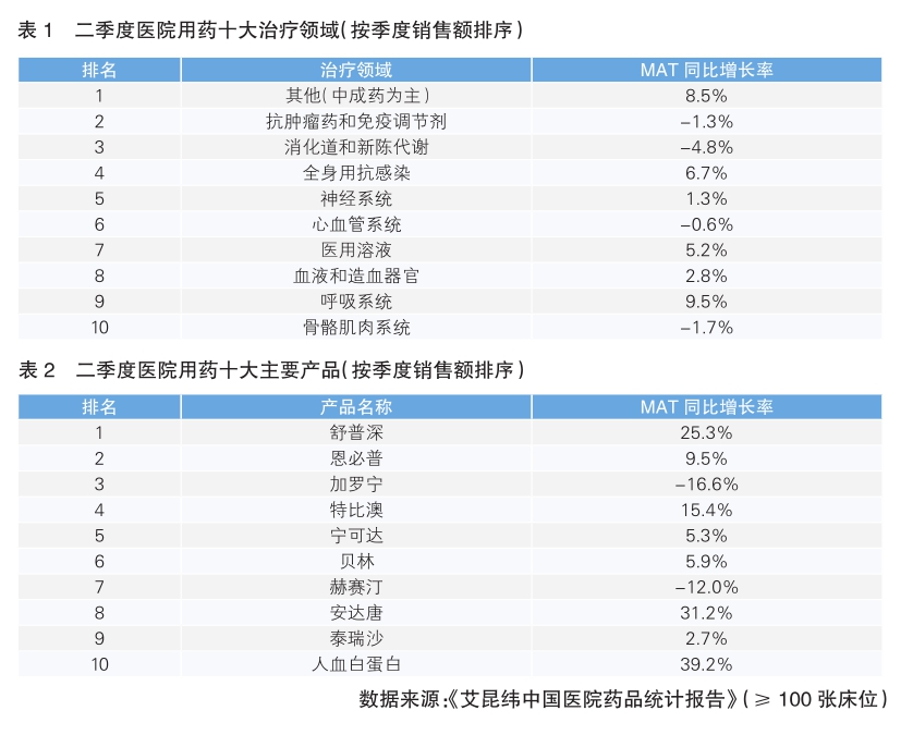 2023年第二季度,中国医院和零售药店市场医药销售额均呈正向增长。其中,医院市场强势复苏,二季度的MAT总销售额同比增长2.4%,恢复正向增长;零售药店市场增速持续走高,MAT同比增长率达到8.9%。