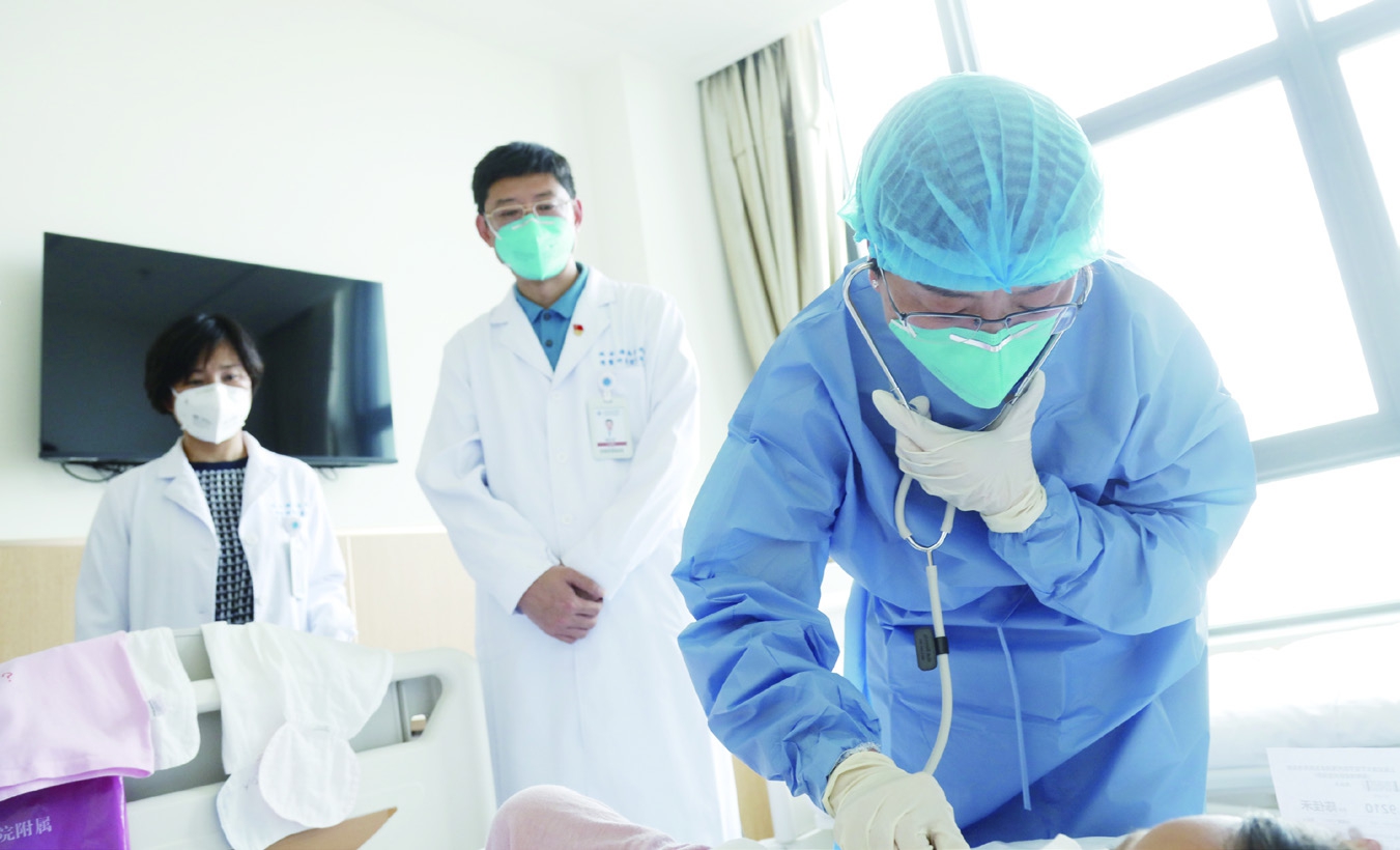 图为瑞金医院海南医院第一个特许药品项目落地,专家正在为全国首例使用该药的先天性软骨发育不全患儿进行用药后的日常检查。