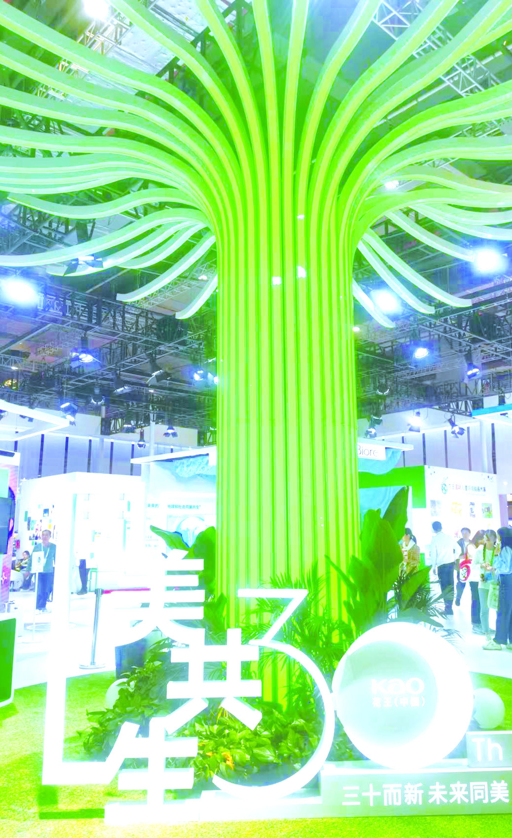 图为花王展区的“同美共生之树”。本报记者 庞雪 摄