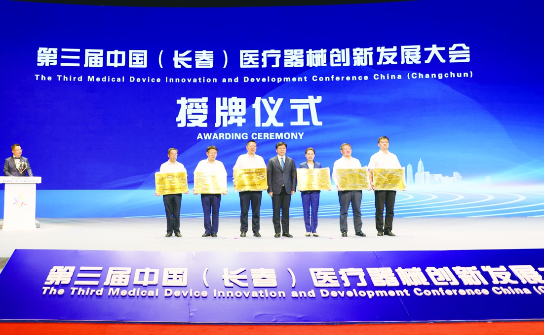 图②为8月24日,在第十四届东北亚博览会第三届中国(长春)医疗器械创新发展大会上,孙继民为医疗器械创新服务站分站授牌。