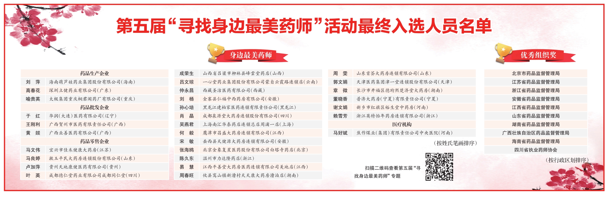 第五届“寻找身边最美药师”活动最终入选人员名单