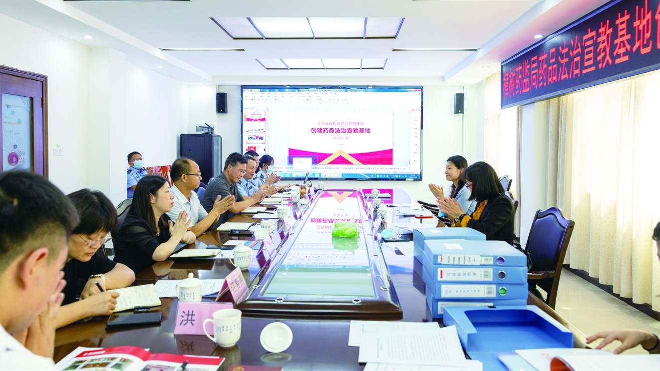 图为樟树药监局创建药品法治宣教基地情况汇报会现场。