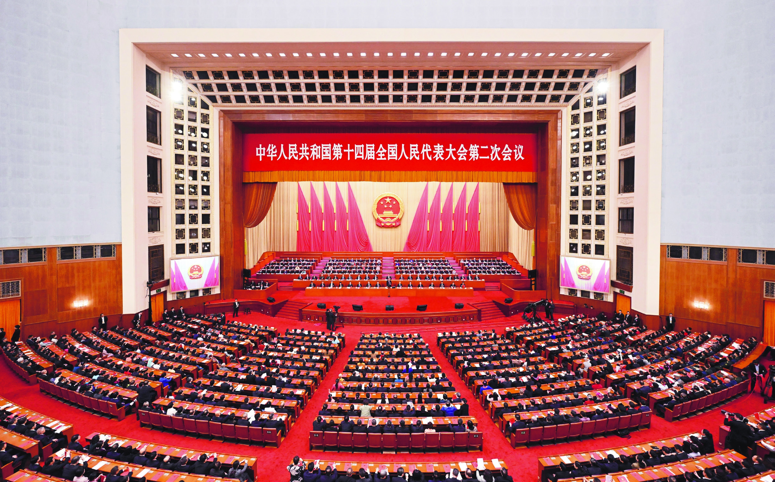 3月11日,第十四届全国人民代表大会第二次会议在北京人民大会堂举行闭幕会。 新华社记者 申宏 摄