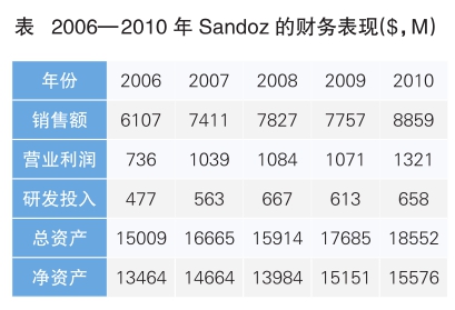 对于Sandoz的战略定位,诺华在2004年年报中描述为:“Sandoz的成功取决于我们成功开发和商业化更多仿制药产品的能力。我们必须开发新的仿制药,并证明它们与原研药品生物等效。监管过程的不可预期性将给我们的效益增加负面影响,同时仿制药价格随竞争对手的增多而下降,甚至大幅下降,所以我们必须率先进入市场。”