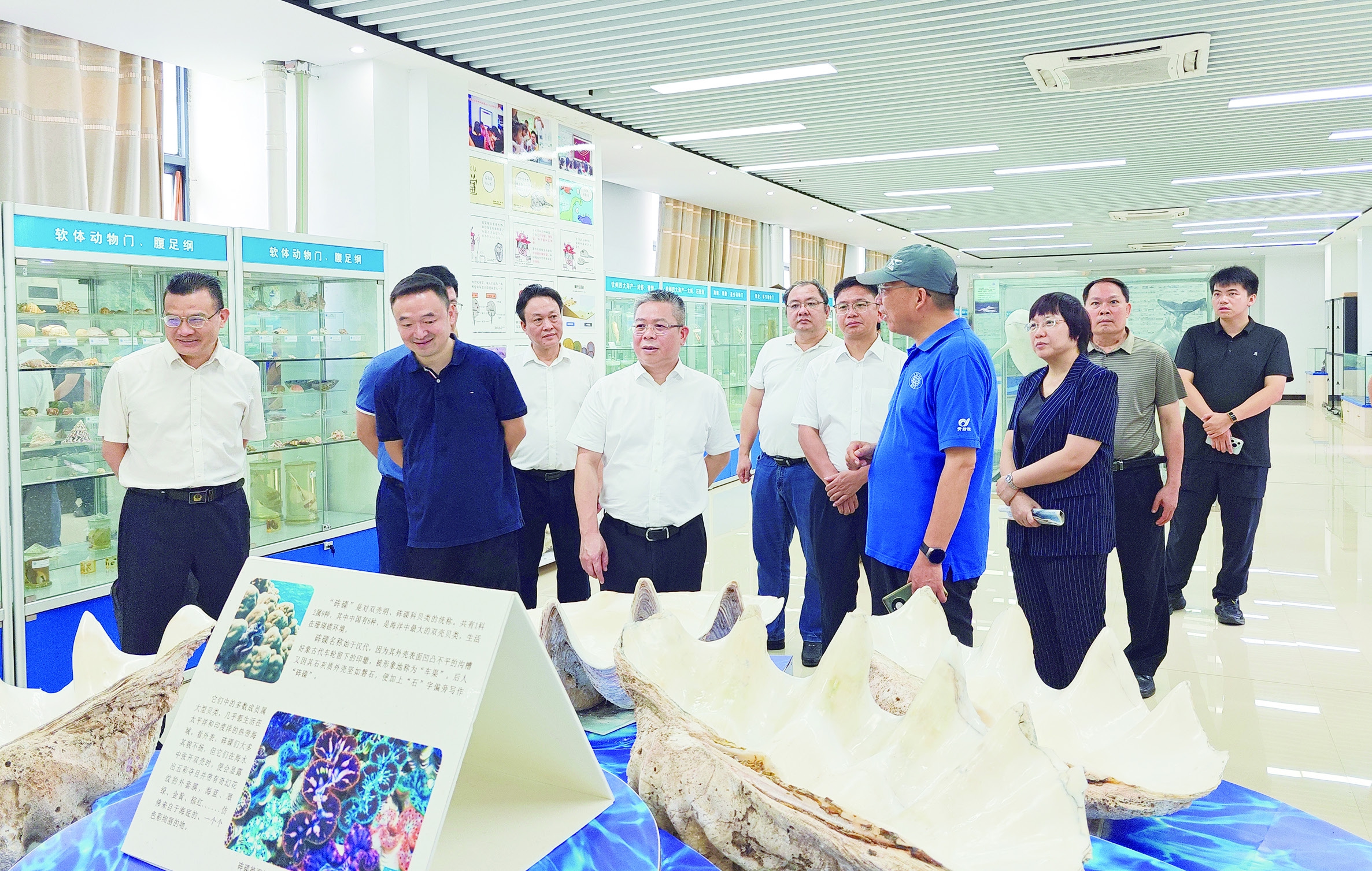 图为调研组在北部湾大学海洋生物多样性养护实验室了解实验室建设情况。