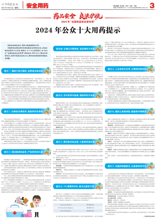 【药品安全 良法护航 2024年“全国药品安全宣传周”】2024年公众十大用药提示