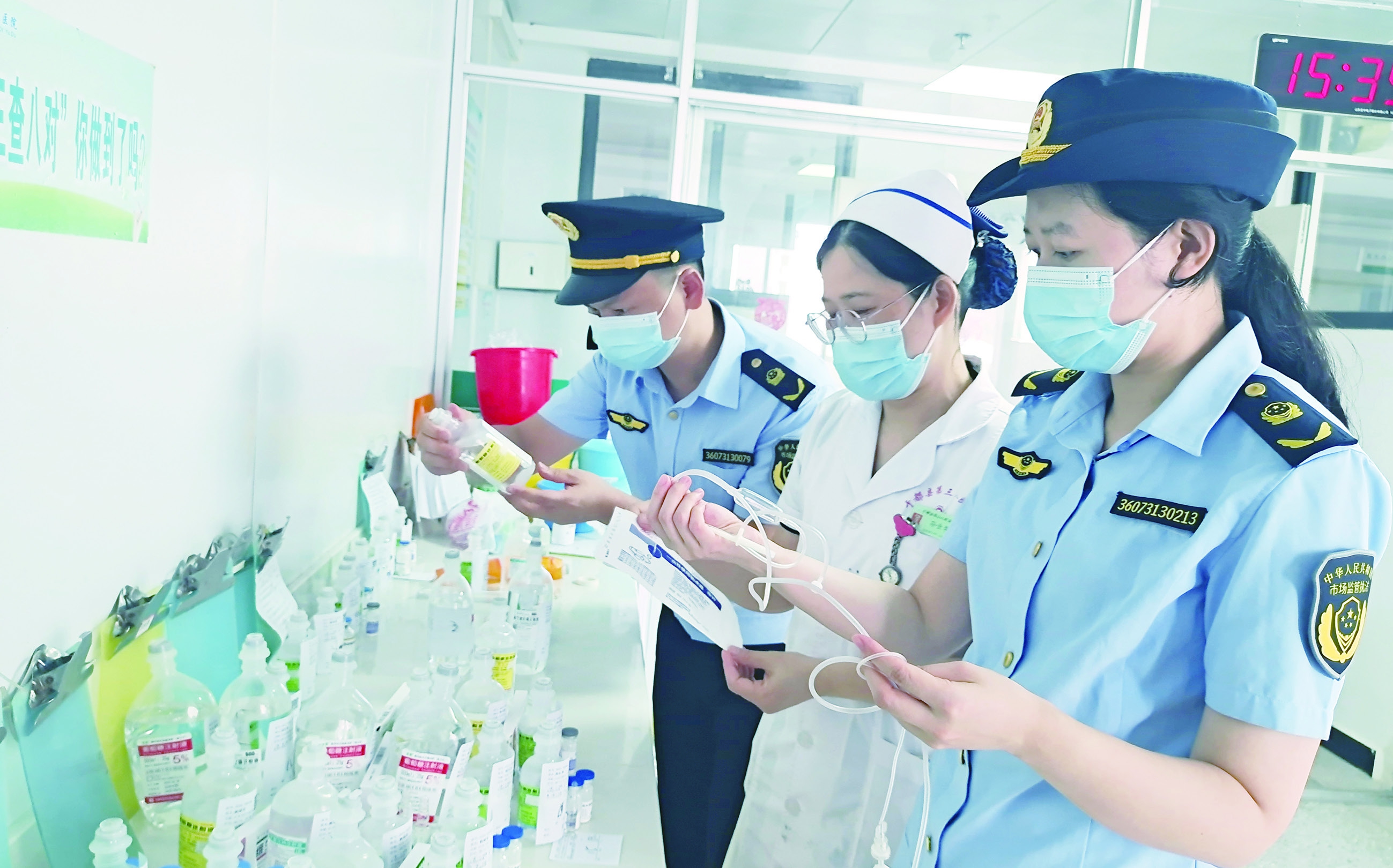 图为该局监管人员在一家医院检查输液产品相关情况。