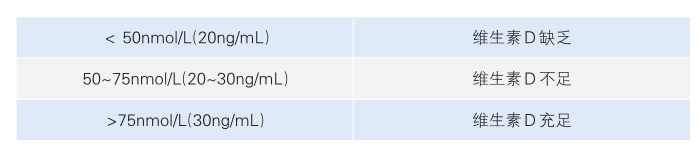 检测血清25-羟基维生素D[25-(OH)VD]是反映体内维生素D储备水平的最好指标。中国成年人群血清25-羟基维生素D的参考值如下: