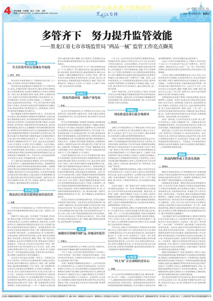 哈尔滨市市场监管局(以下简称哈尔滨市局)上下贯通、左右联动,筑牢医疗器械安全底线。