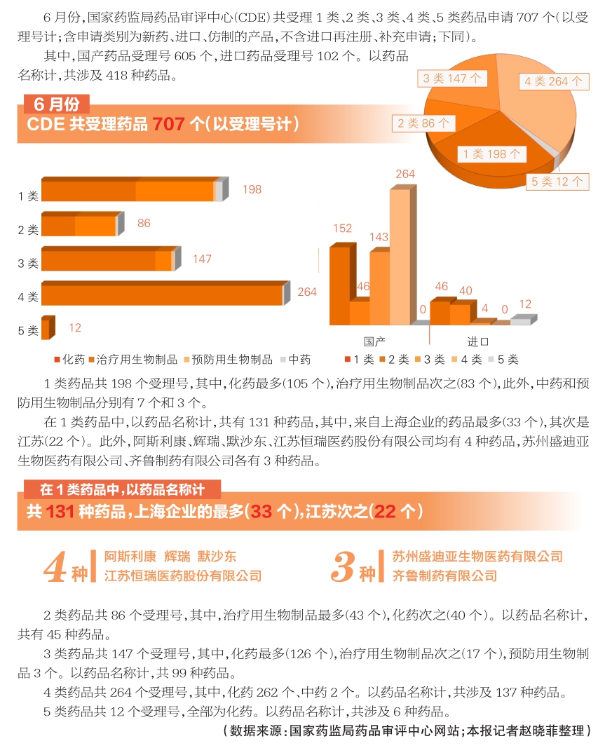 【数据看点】6月份国家药监局药品审评中心药品受理情况
