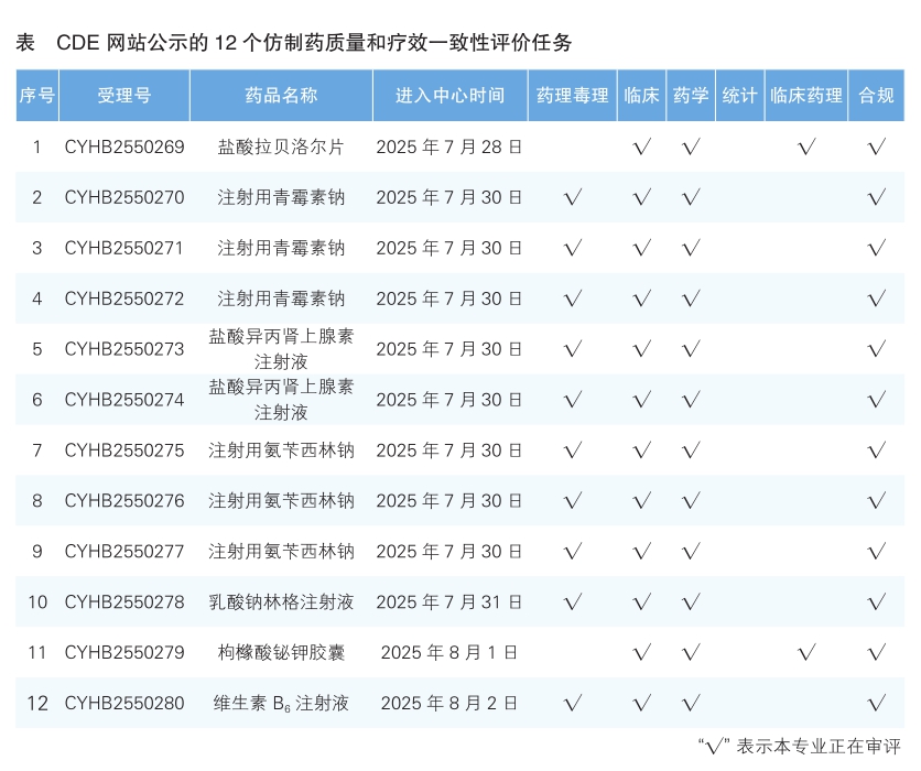 6.CDE网站公示12个仿制药质量和疗效一致性评价任务(详见表),涉及盐酸拉贝洛尔片等品种。