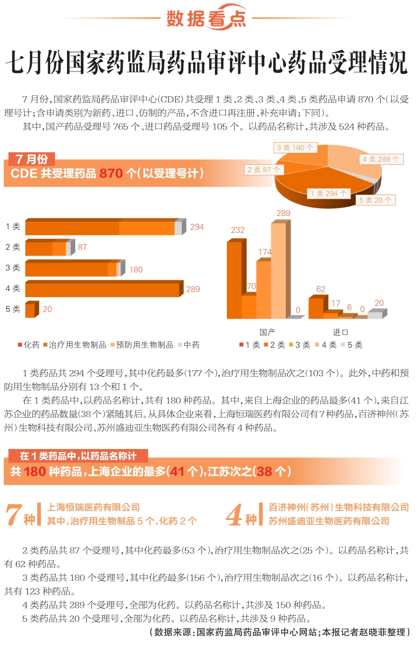 【数据看点】七月份国家药监局药品审评中心药品受理情况