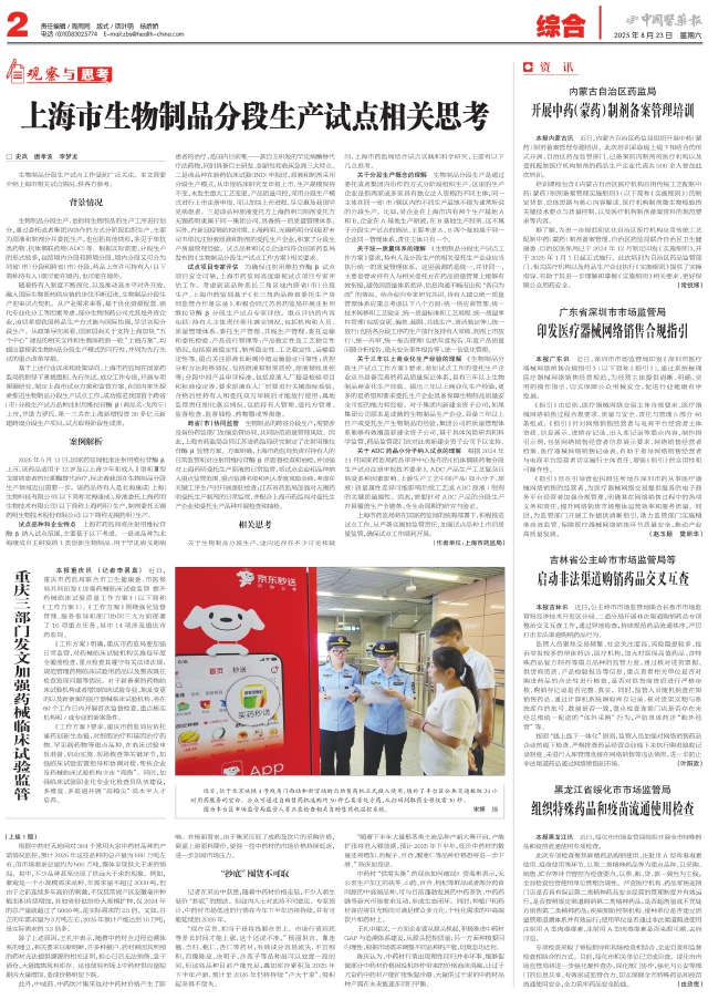 【观察与思考】上海市生物制品分段生产试点相关思考