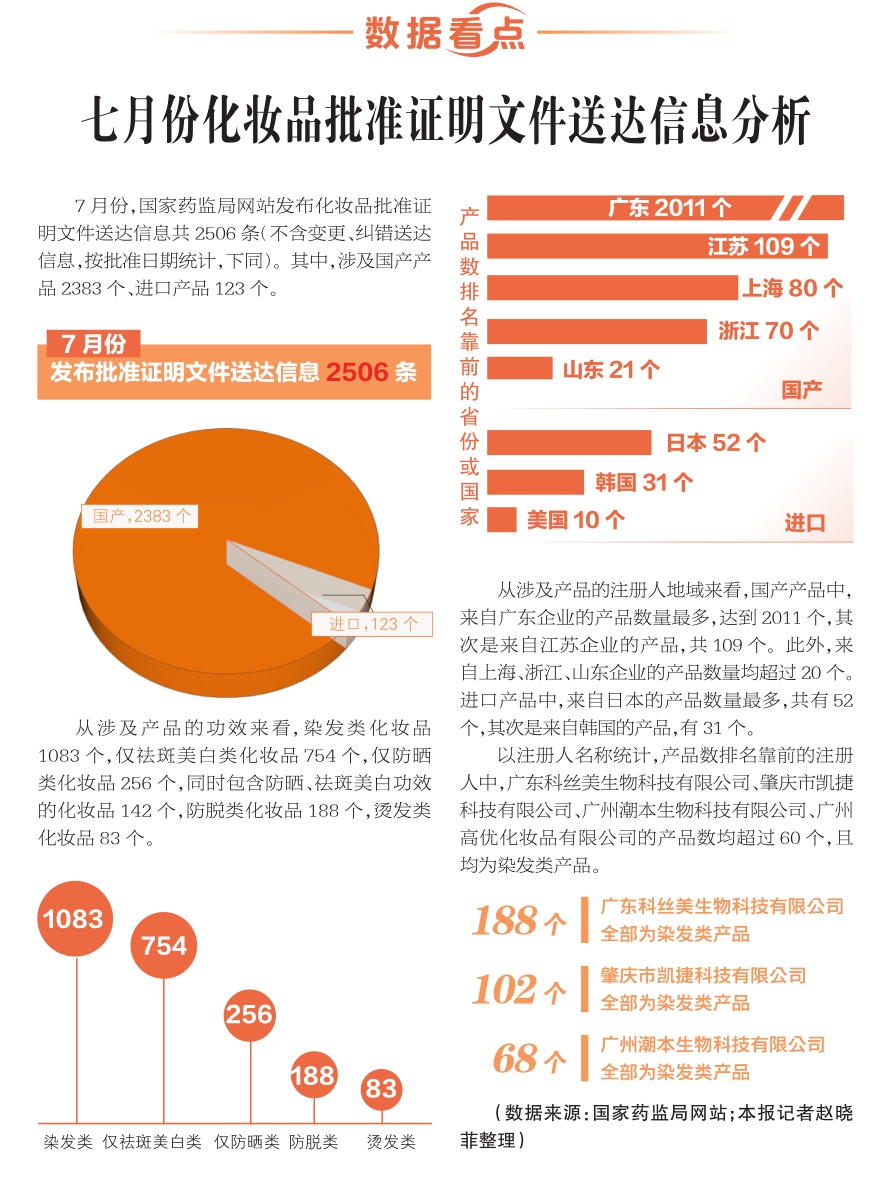 【数据看点】七月份化妆品批准证明文件送达信息分析