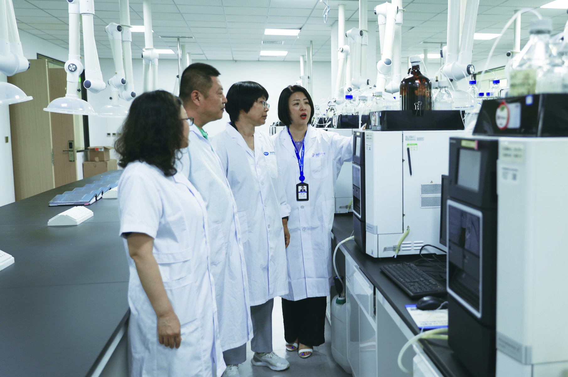图为该局监管人员在长春海悦药业股份有限公司质量控制实验室进行技术指导。