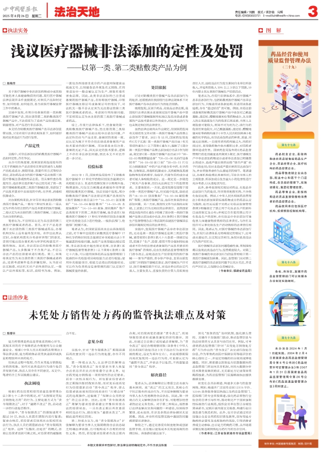 本文结合贴敷类医疗器械产品非法添加监管实践,讨论在现行法律法规体系下,如何更好地对此类违法行为进行监管。