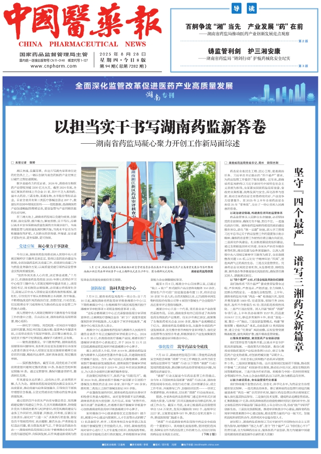 01版 全面深化监管改革促进医药产业高质量发展 湖南专刊