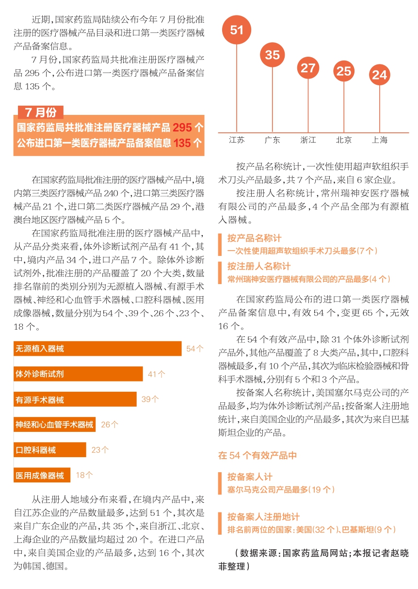 【数据看点】国家药监局公布七月份医疗器械注册备案情况