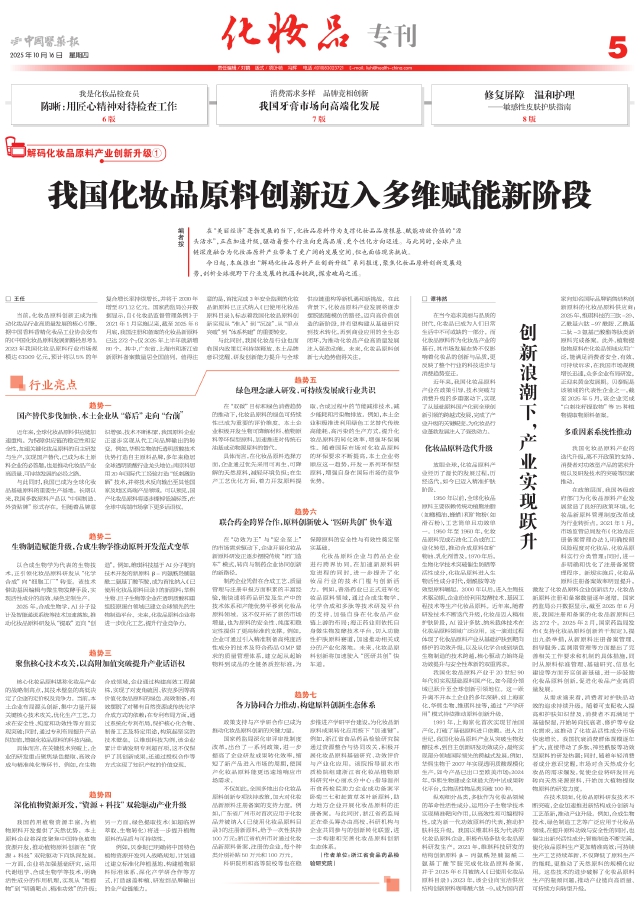 【解码化妆品原料产业创新升级】我国化妆品原料创新迈入多维赋能新阶段