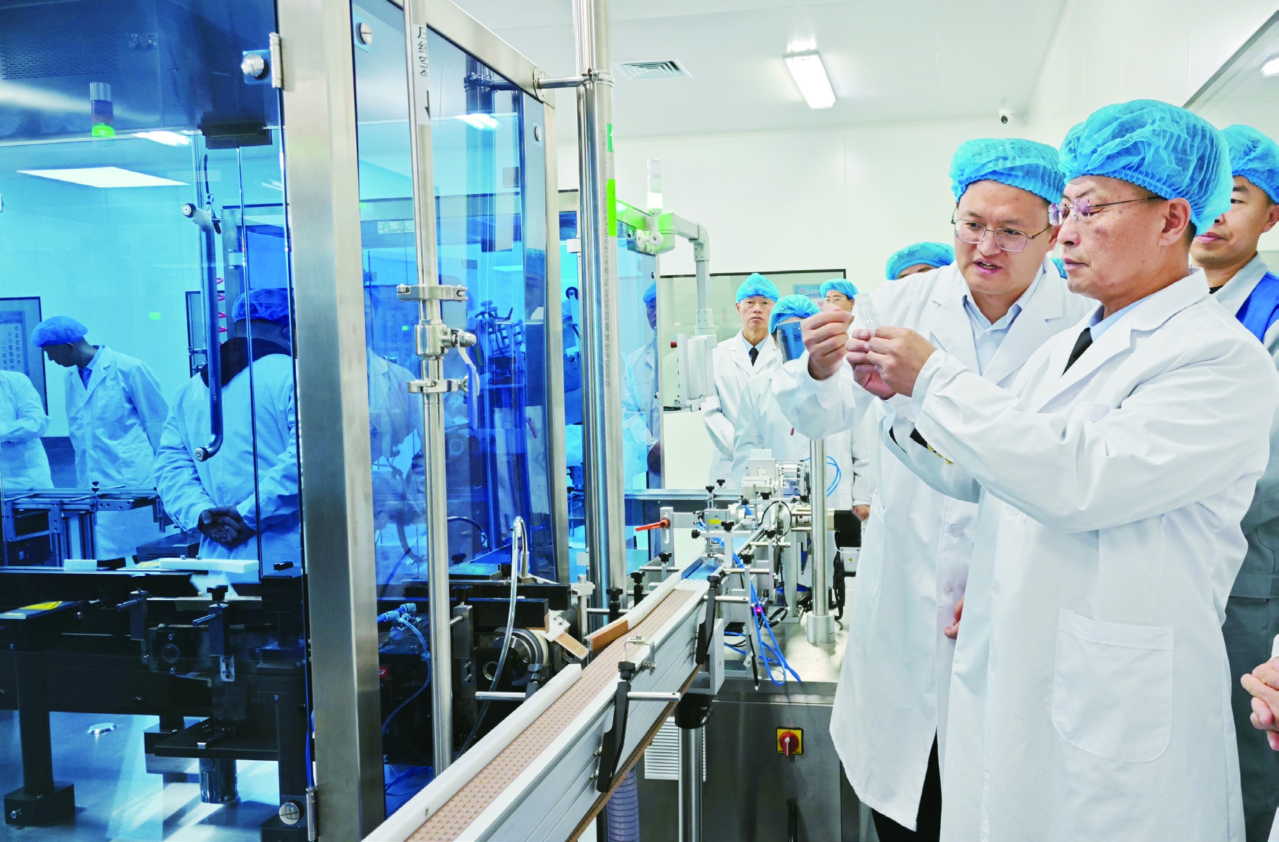 图为该分局监管人员在吉林敖东延边药业股份有限公司药品生产车间检查。