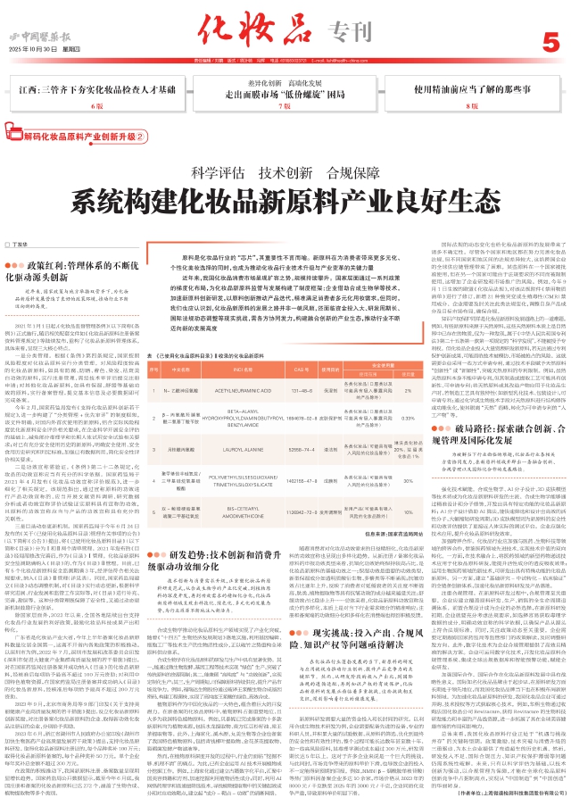 为破解当下行业面临的难题,化妆品行业各相关方需协同发力,在新原料领域开辟出一条融合创新、合规管理以及国际化合作的发展路径。