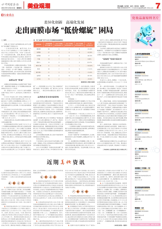 2.国家药监局发布《关于开展化妆品电子标签试点工作的通知》(以下简称《通知》)。《通知》显示,自2026年2月1日起,在北京市、上海市、浙江省、山东省、广东省、重庆市试点通过电子标签方式标注化妆品中文标签,试点工作为期3年。海南离岛免税化妆品电子标签试点工作可按照《通知》要求执行。同时,国家药监局配套发布《化妆品电子标签试点工作要求》《化妆品电子标签数据集》《化妆品电子标签二维码技术规范》,明确试点企业要求、试点管理模式,以及化妆品电子标签系统建设要求。