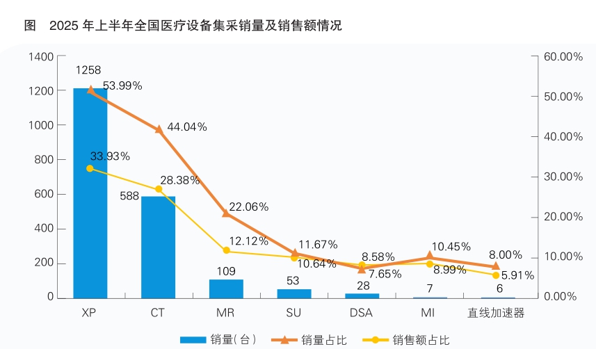 医疗设备集中带量采购(以下简称集采)正持续改变着医疗设备市场的格局与产品流向。2025年上半年全国医疗设备集采数据显示,不同品类在集采覆盖广度(以销量占比衡量)和价格策略(以销售额占比体现)两方面呈现显著差异,地区分布勾勒出“量在中西部、值聚东南”的鲜明图景。